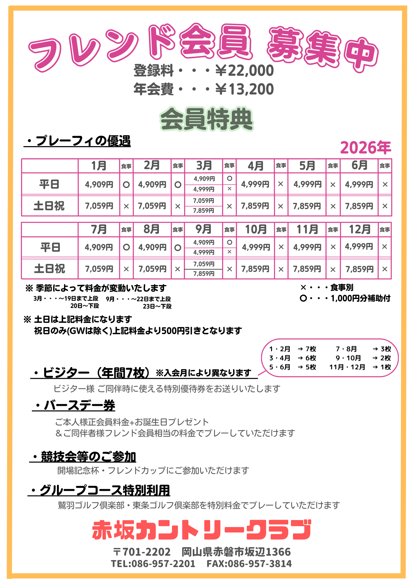 2026.01.01 年始のご挨拶 2025.12.31 年末のご挨拶 2025.12.24 平日フレンド会員募集 2025.12.24 フレンド会員募集 2025.08.14 クールファンカート導入
