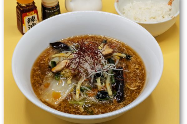 カリカリの麺の上に、海鮮や野菜などが入った具沢山のあんをたっぷりのせた人気メニューです。